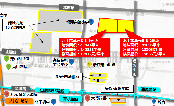 萧山国土挂牌两宗相邻宅地,均位于银河小学东面,总出让面积91127平米,总体量30.03万方,计划于2016年6月20日出让。
